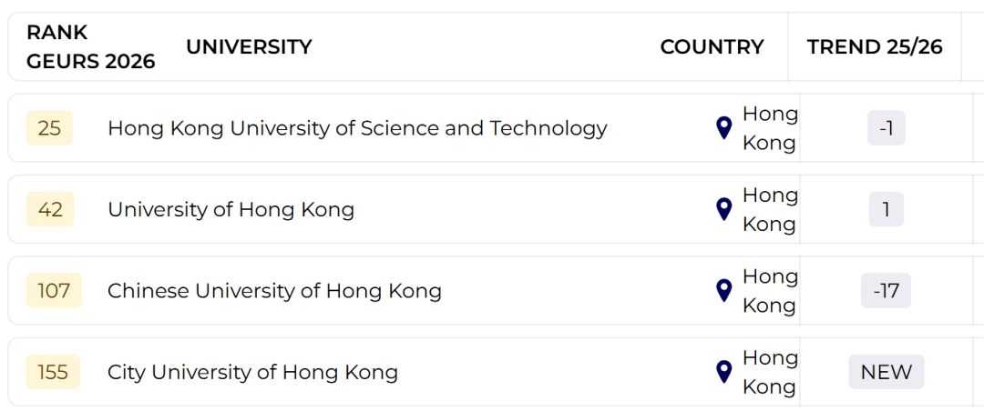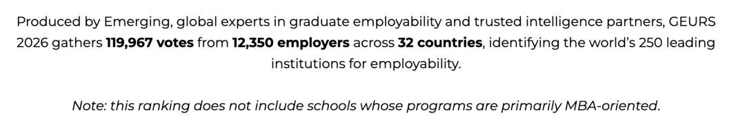 不同于侧重学术研究的传统排名,GEURS 2026以雇主视角为核心,聚焦毕业生就业力、院校与企业合作深度、国际职场声誉等关键维度,为我们呈现了全球高校的“职场适配力”全景。