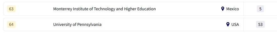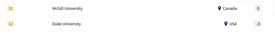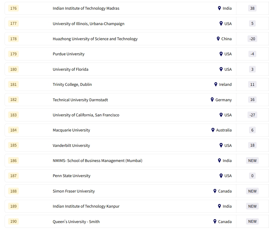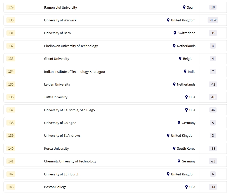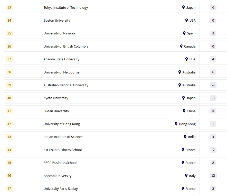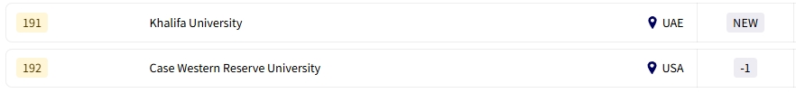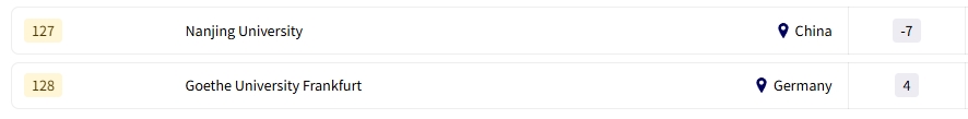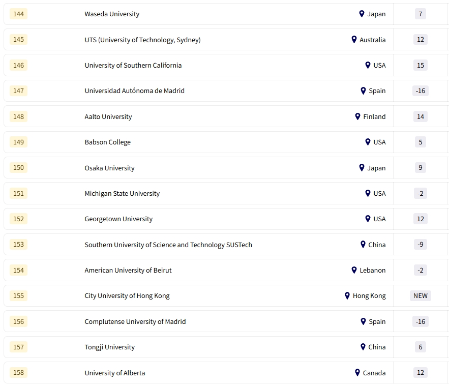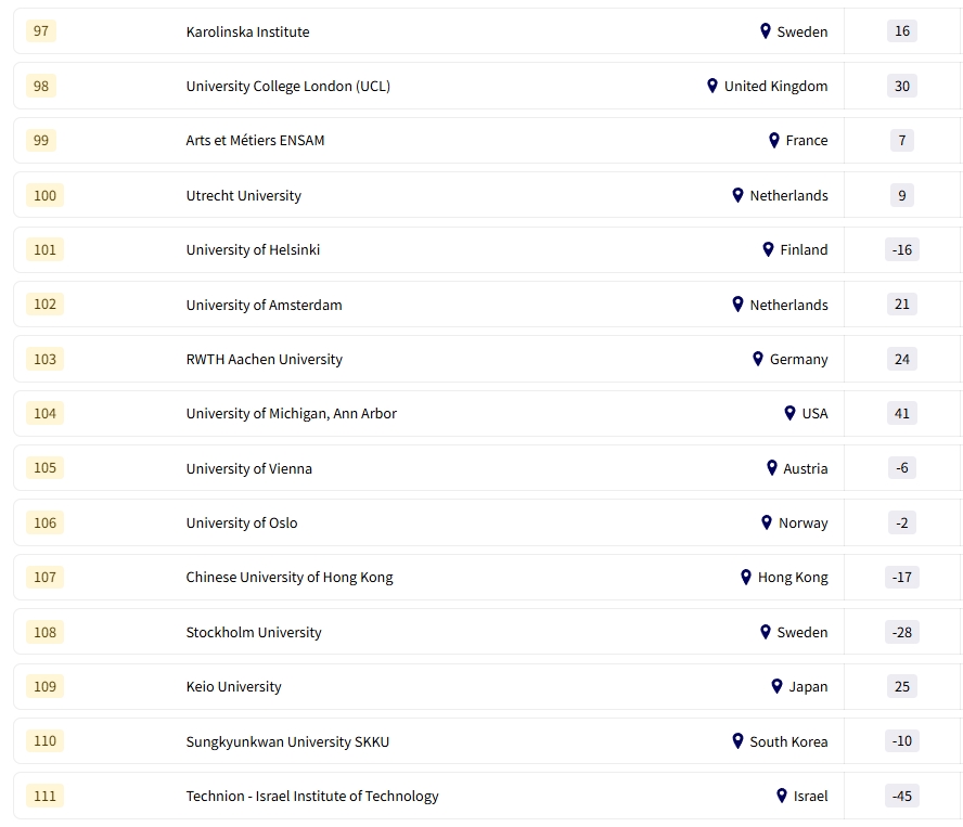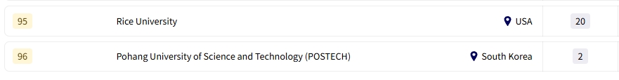 香港科技大学(第25,下降1位)、香港大学(第42,上升1位)入围前50。