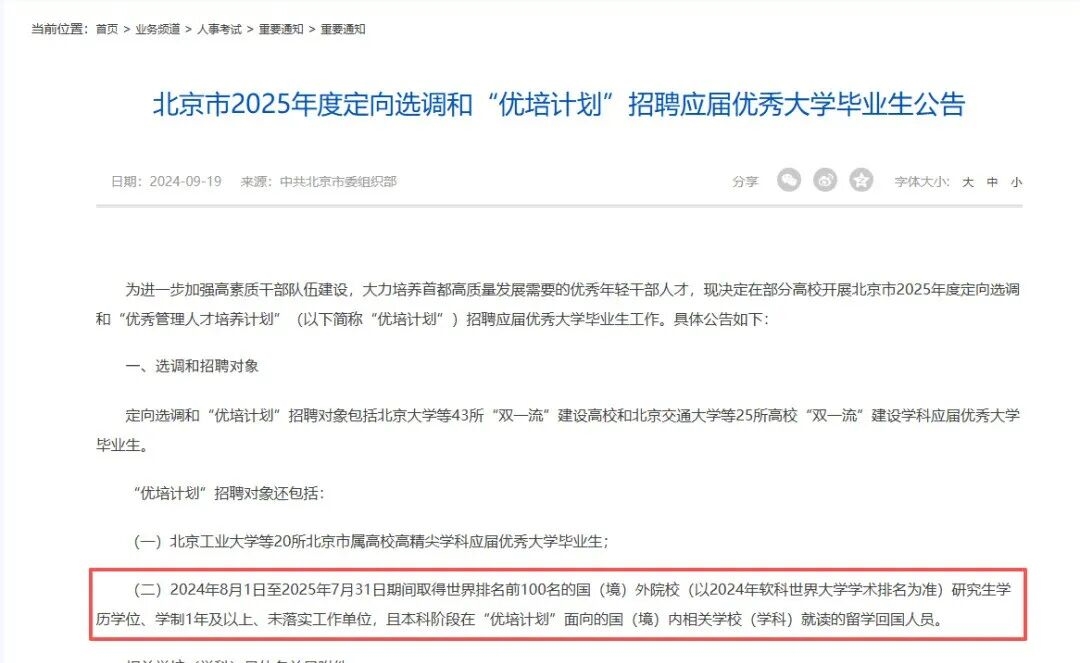 招聘公告会明确列出认可的海外院校名单,通常参考QS、U.S.News、THE或ARWU等主流世界大学排名前100名的高校。