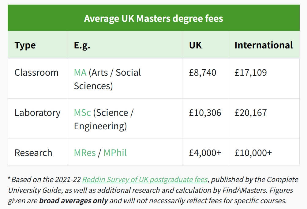 在某些情况下,研究型硕士的学费可能比授课型硕士要便宜,比如人文社科领域的MRes学费就比MA的要便宜一些,类似的,人文社科的PhD也会要比MA更便宜一些。